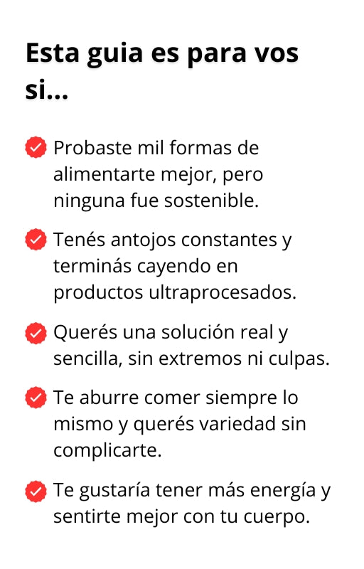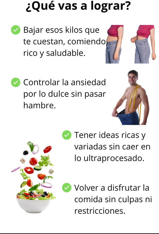 Porque este libro te ahorra tiempo, errores y frustraciones. En lugar de perderte entre recetas sueltas o poco claras, tenés todo en un solo lugar: organizado, probado, con resultados que funcionan desde el principio y pensados para ayudarte a comer mejor.